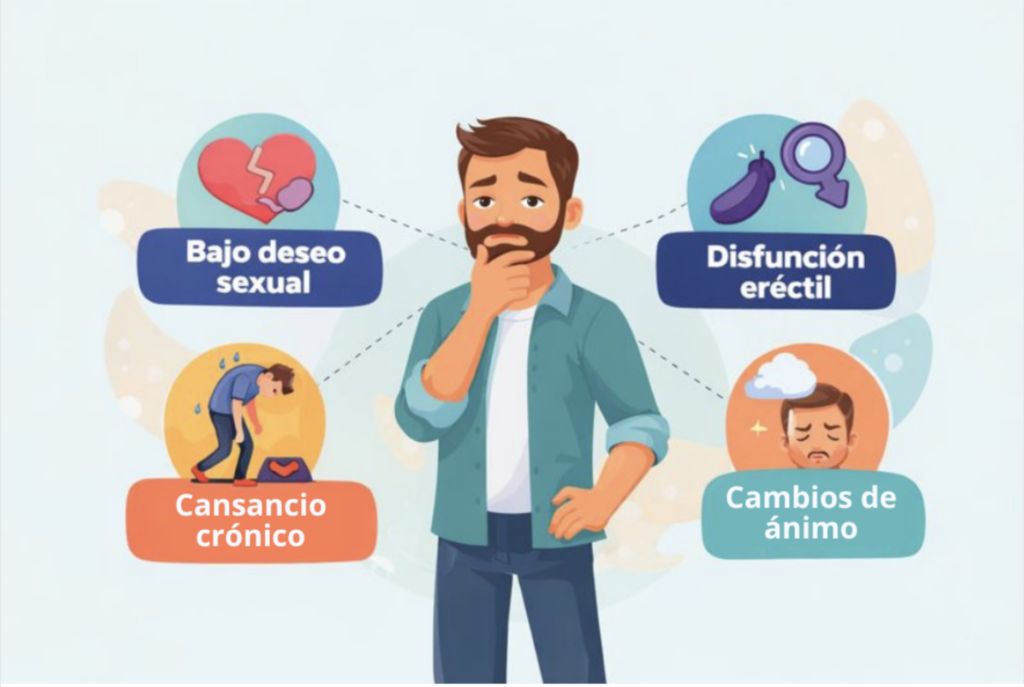 De acuerdo con el Instituto de Seguridad y Servicios Sociales de los Trabajadores del Estado (ISSSTE), esta disminución hormonal puede manifestarse a través de: